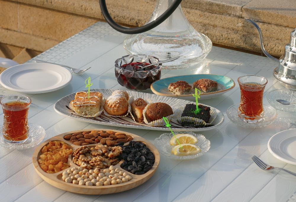 Acika, süzmə, albalı salatı, çoban salatı, lülə kabab, tikə kabab, toyuq kabab, ciyər kababı, kartof lülə, külləmə pomidor