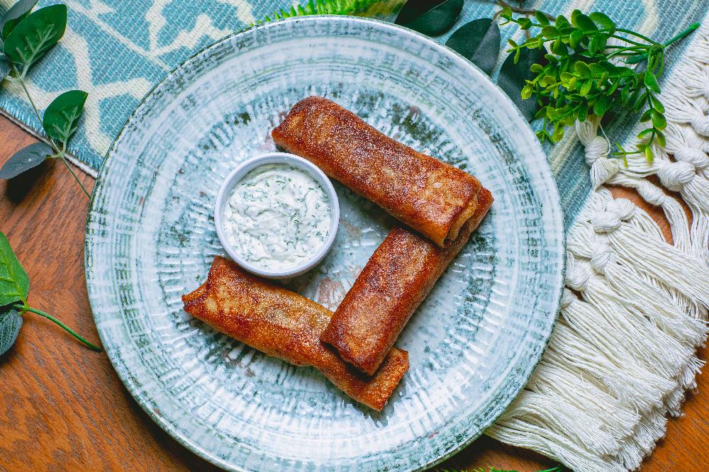 Un, yumurta, suxari, krevetka, svit çili sous, göyərti