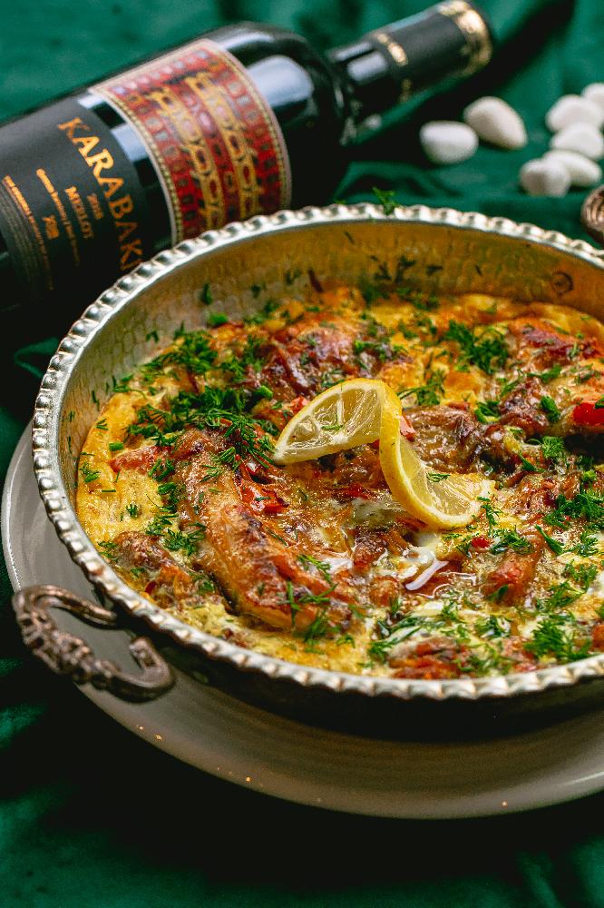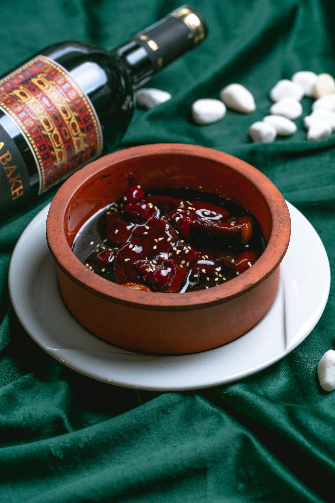 Kənd çolpası, ağ şərab, meyvə (mövsümi) , duz, istiot, kərə yağı