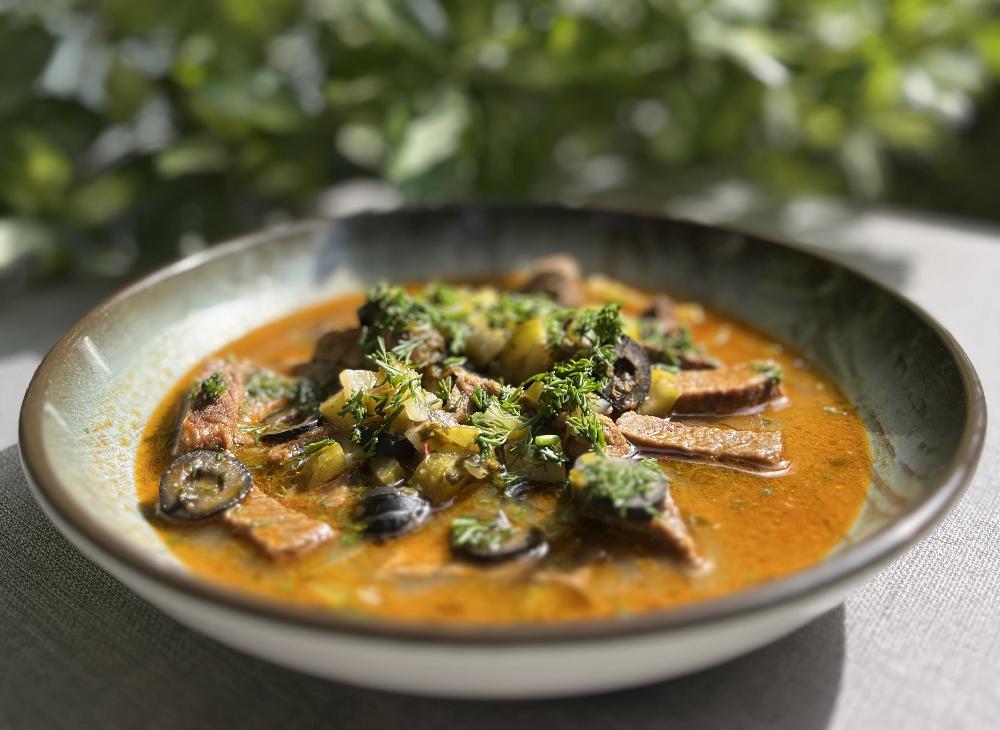 Badımcan, bel əti, bolqar bibəri, acı bibər, bulyon, duz, göbələk, göyərti, istiot, kartof fri, lavaş, meyvə nar, pomidor, sarıkök, soğan, bitki yağı, kərə yağı