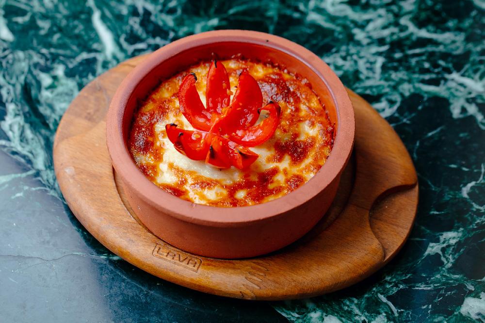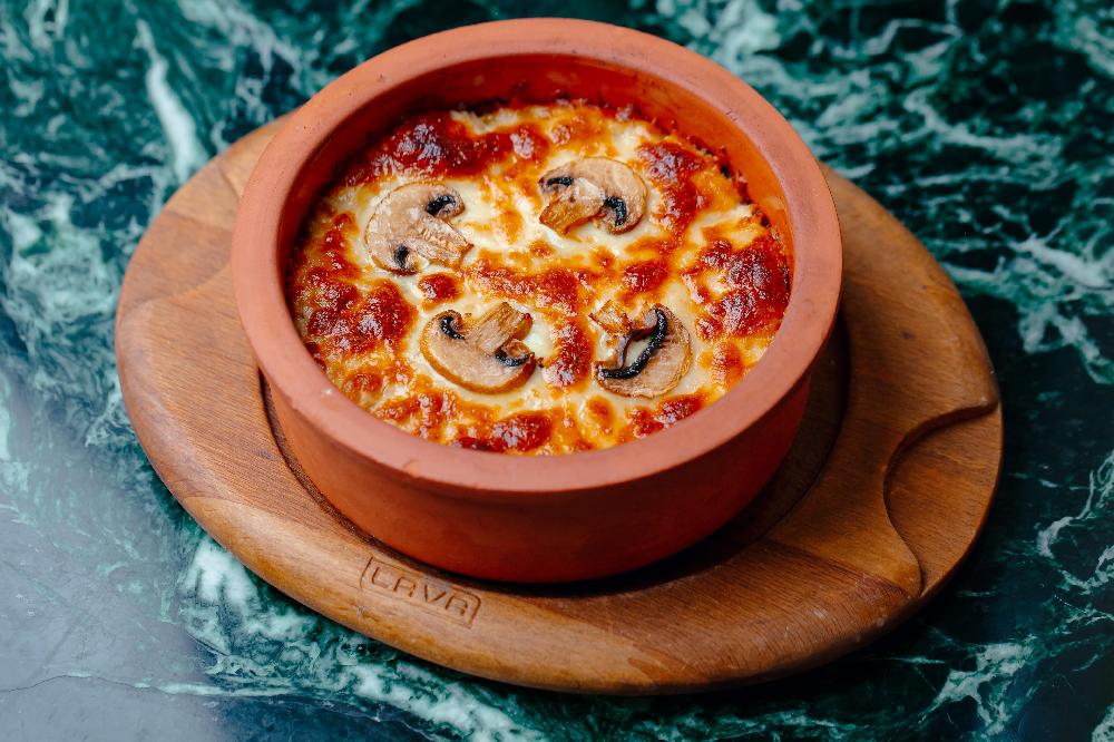Mal əti/dana əti, toyuq filesi, qaymaq,bibər yaşıl/bolqar, pendir suluguni, gürcü ədviyyatları, istiot qara üyüdülmüş, duz, göbələk, yağ bitki, bibər rəngli, yağ kərə