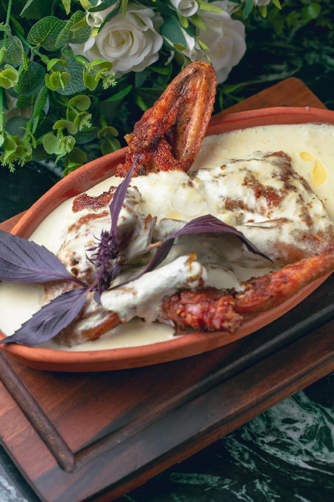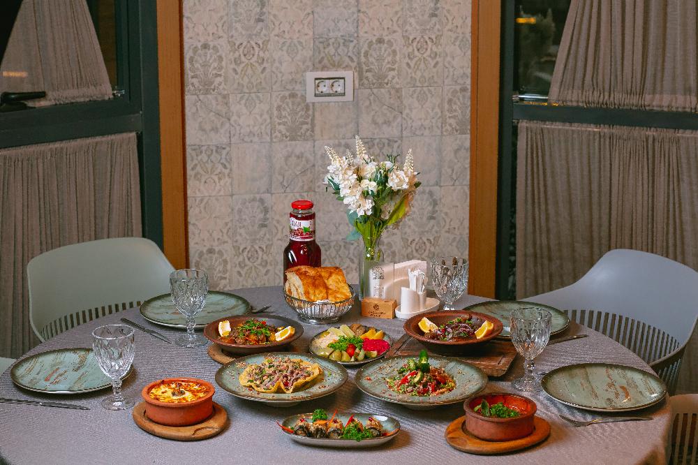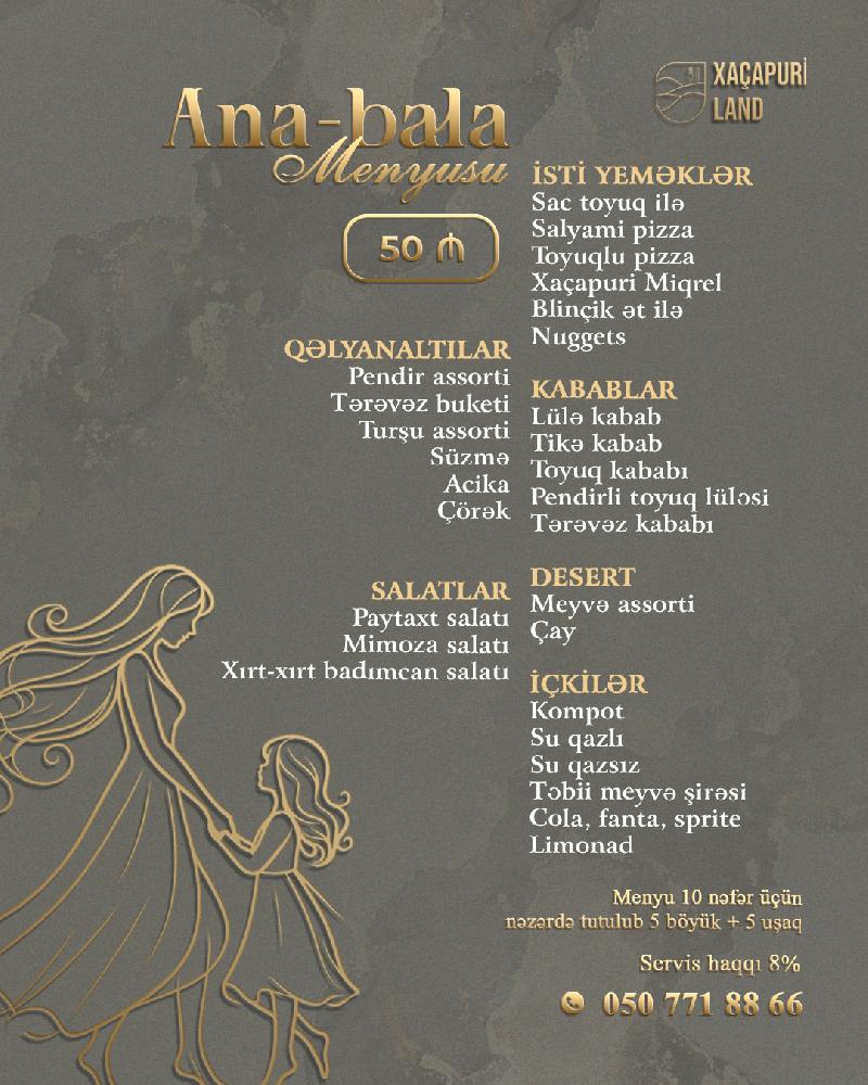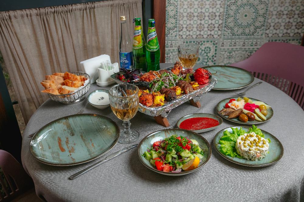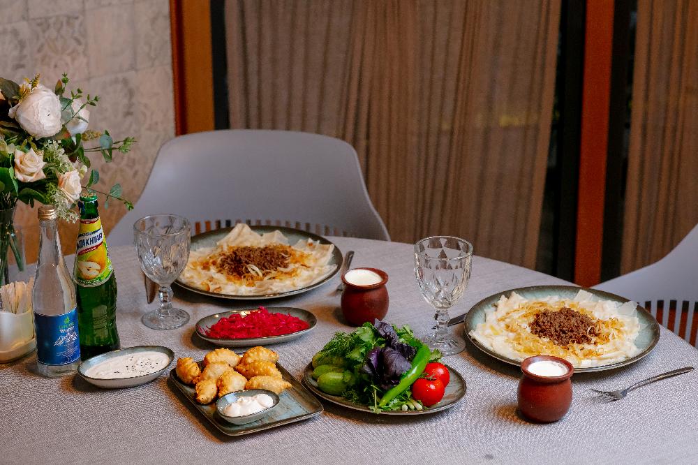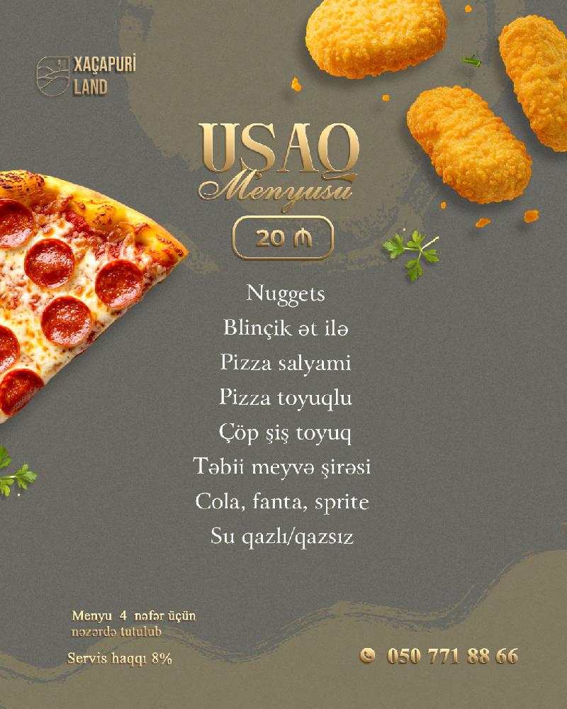 Gürcü xəngəli 16, Gürcü xəngəli qızartma 16, Gürcüsayağı təzə salat, Yapraq 2, turşu çeşidi , acika, Qatıq küp, Lemonad Tərxun/Düşes 0.5L, Su qazlı qazsız, Miqrel Xaçapuri və ya İmeruli Xaçapuri