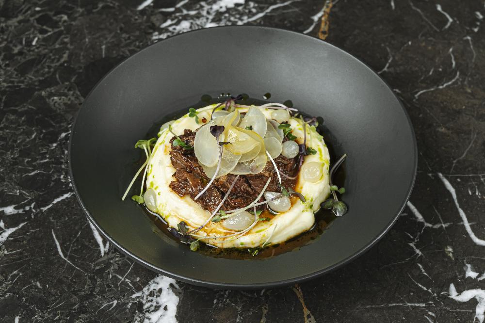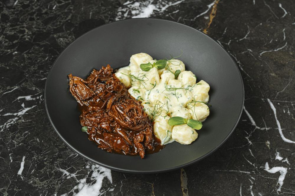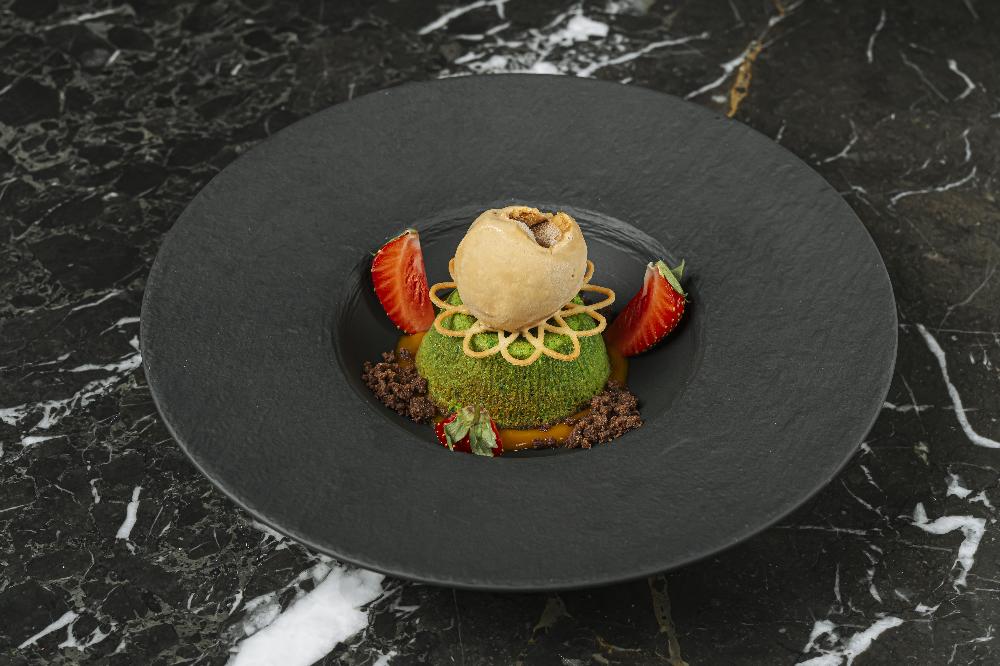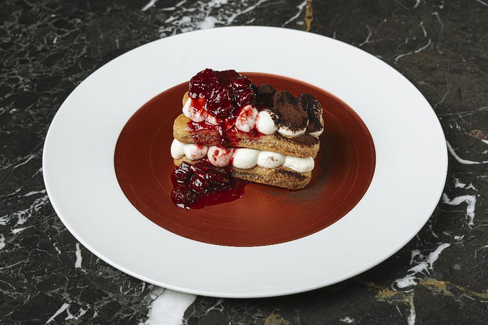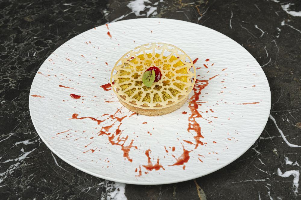 "Syrniki" Cheesy Pancake with Red Cherry Coulis and Salted Caramel