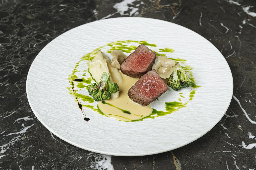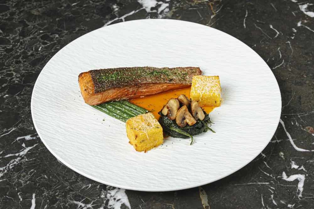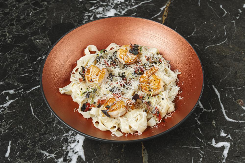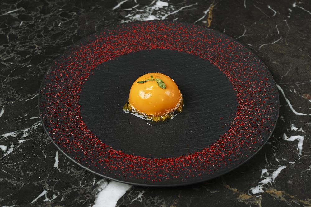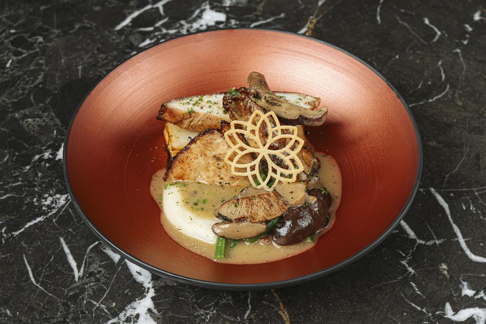 seasoned with lemon olive oil, thyme, marinated egg yolk and parmesan cream