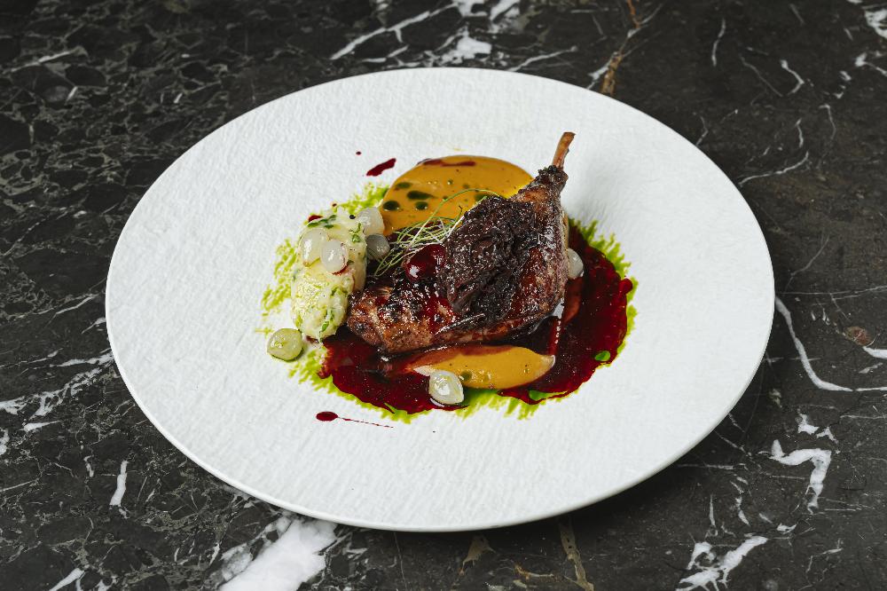 with red cheryy doymec and local goat cheese