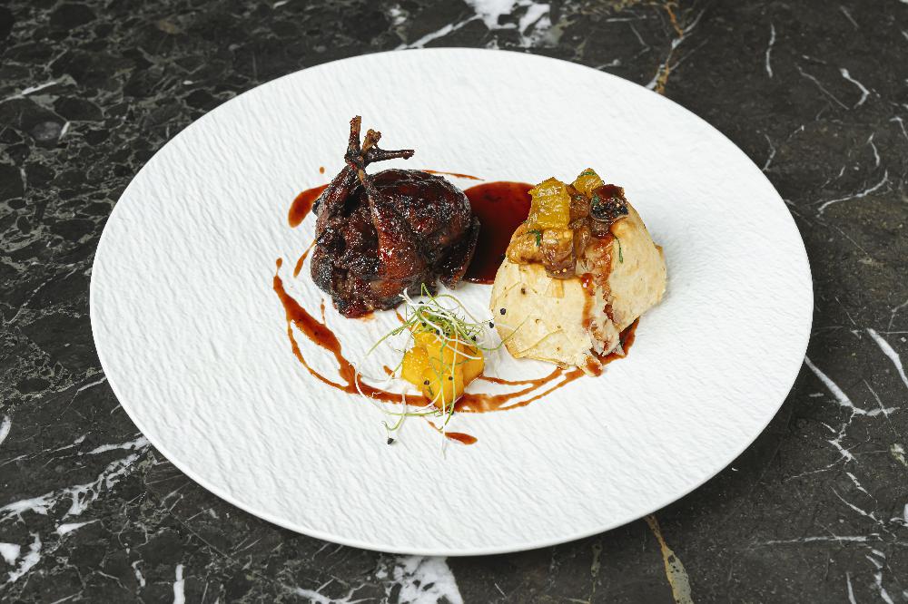 with glazed beetroot, fresh mesclun leaves, respberry glaze and mango chutny