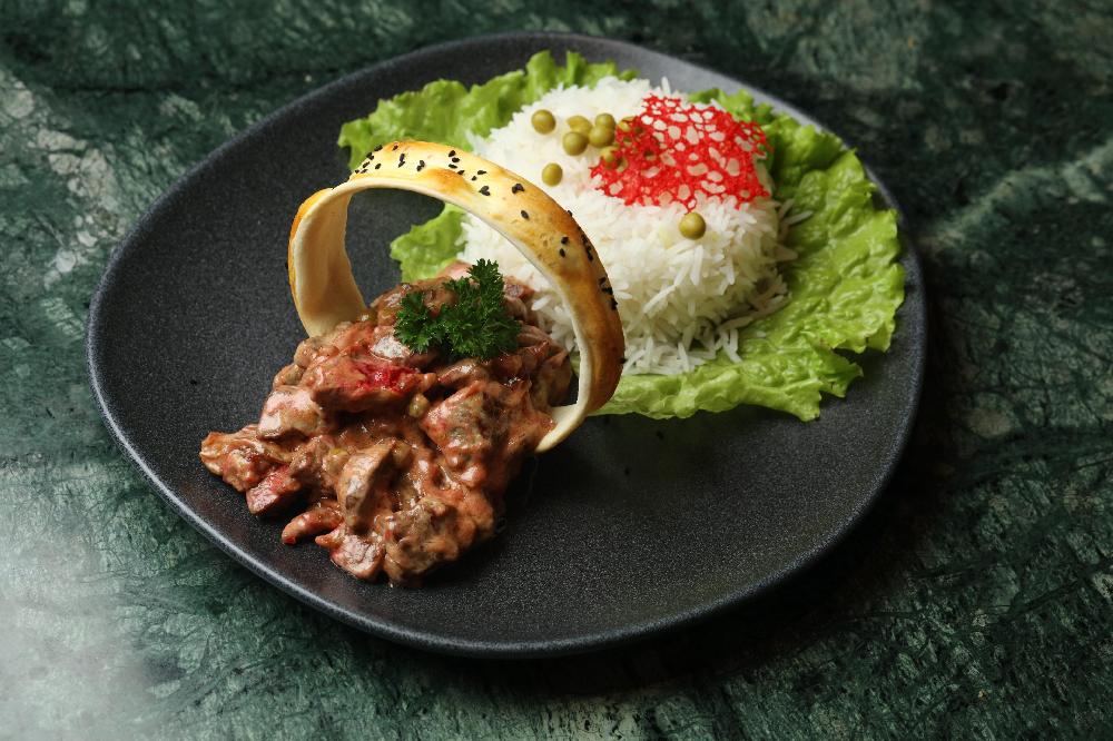 Dana əti, göyərti, soğan, albuxara, uzun düyü