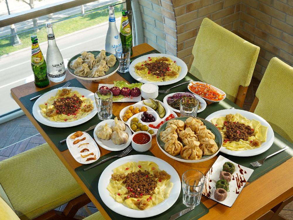Gürcü xəngəli - 8 ədəd, Yarpaq xəngəli - 2 ədəd, turşu assorti, acika, qatıq, 6 ədəd məzə, Gürcü limonadı(0.5l), Sirab premium(0.75l)