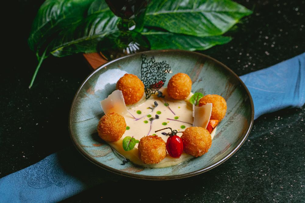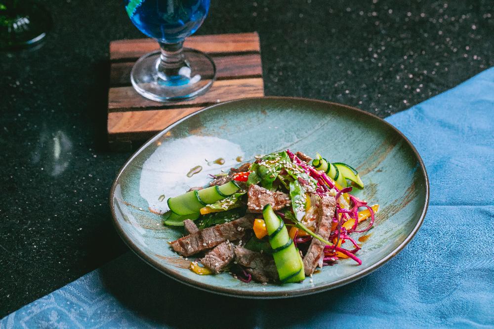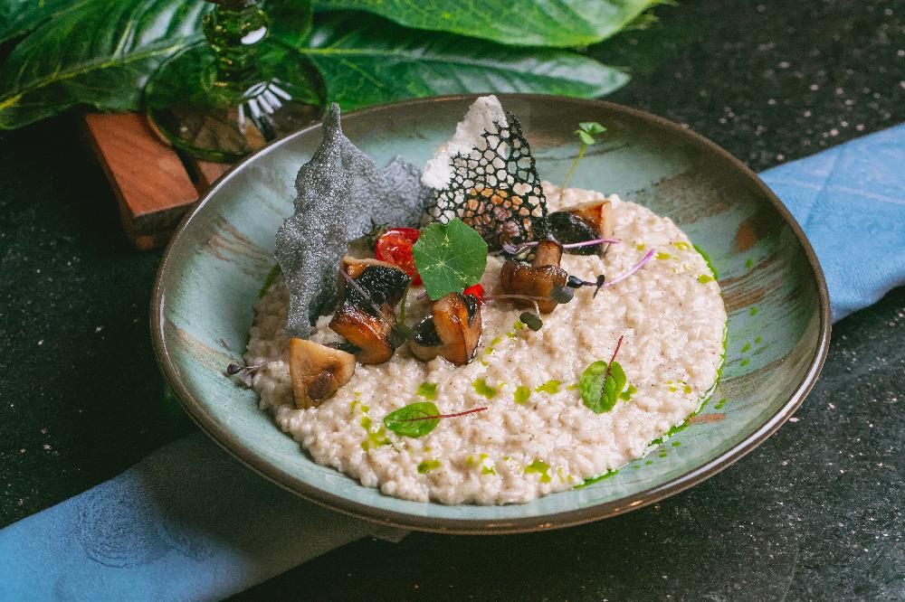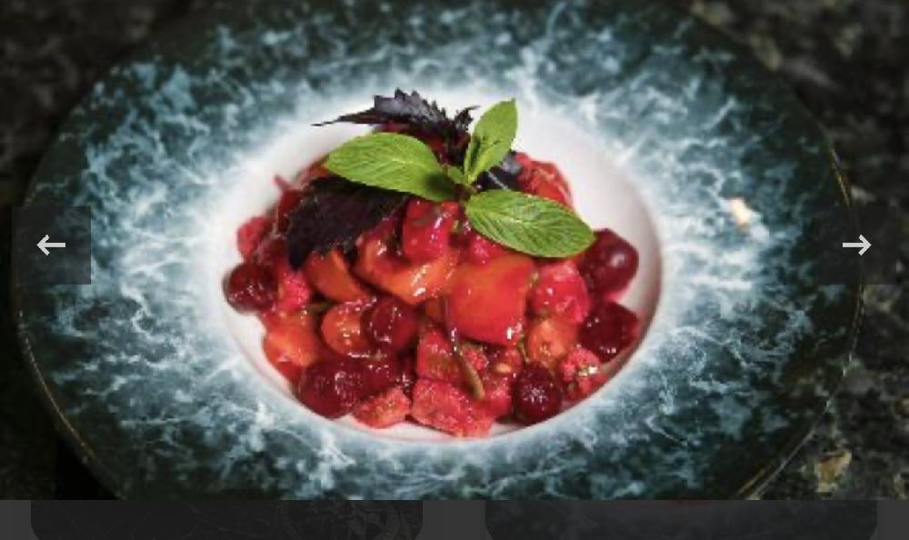 Pomidor Qazax,pomidor çerri,pendir mozzarella buffalo,kahı yaşıl,göyərti,hind qozu,keşyu,sous pesto,üzüm qara