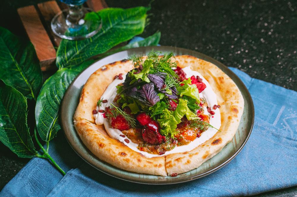 Kənd çolpası, soğan, göbələk, pomidor, acı bibər, rəngli bibər, badımcan, kartof, lavaş.