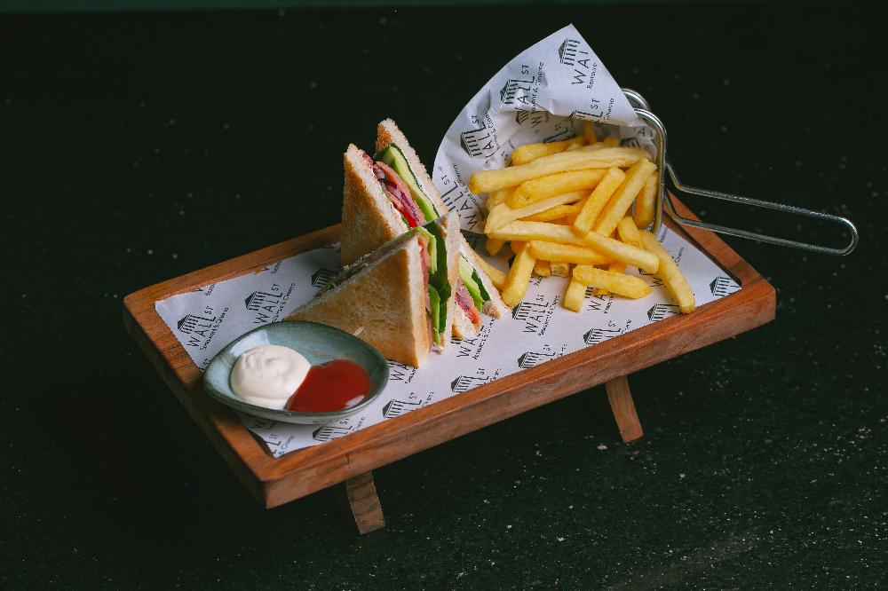 Mal əti, kartof fri, pomidor, holland pendiri, ketçup, mayonez, xiyar turşusu.